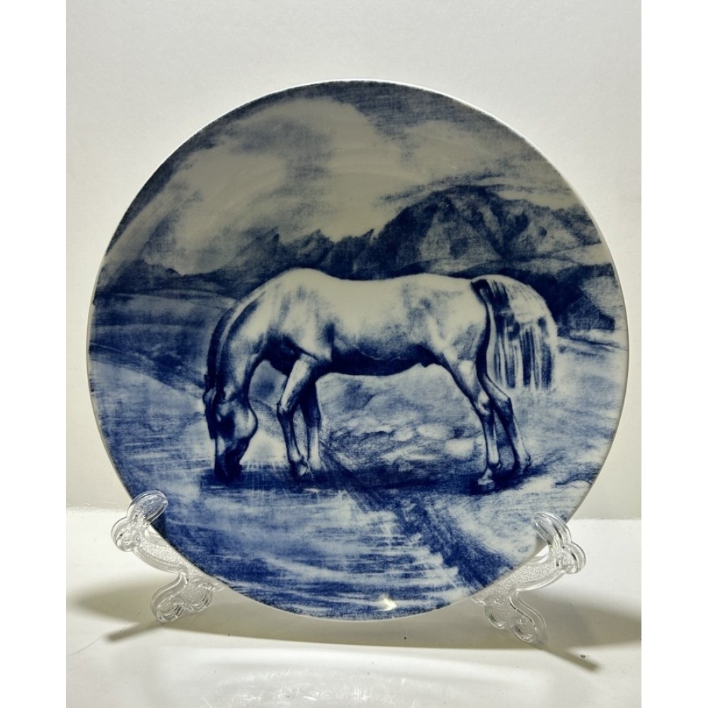 White and Blue Decorative Plate Horse Lomonosov Imperial Porcelain