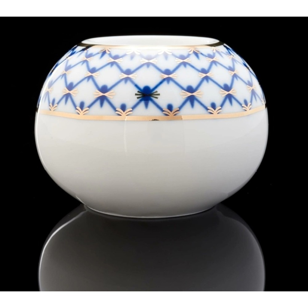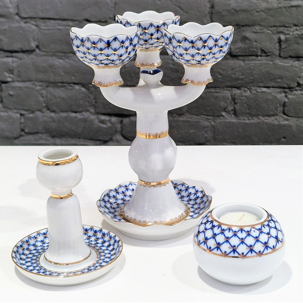 6" x 6 1/2" x 10" (14.5 x 15.5 x 22 cm). Holds 3 candles.