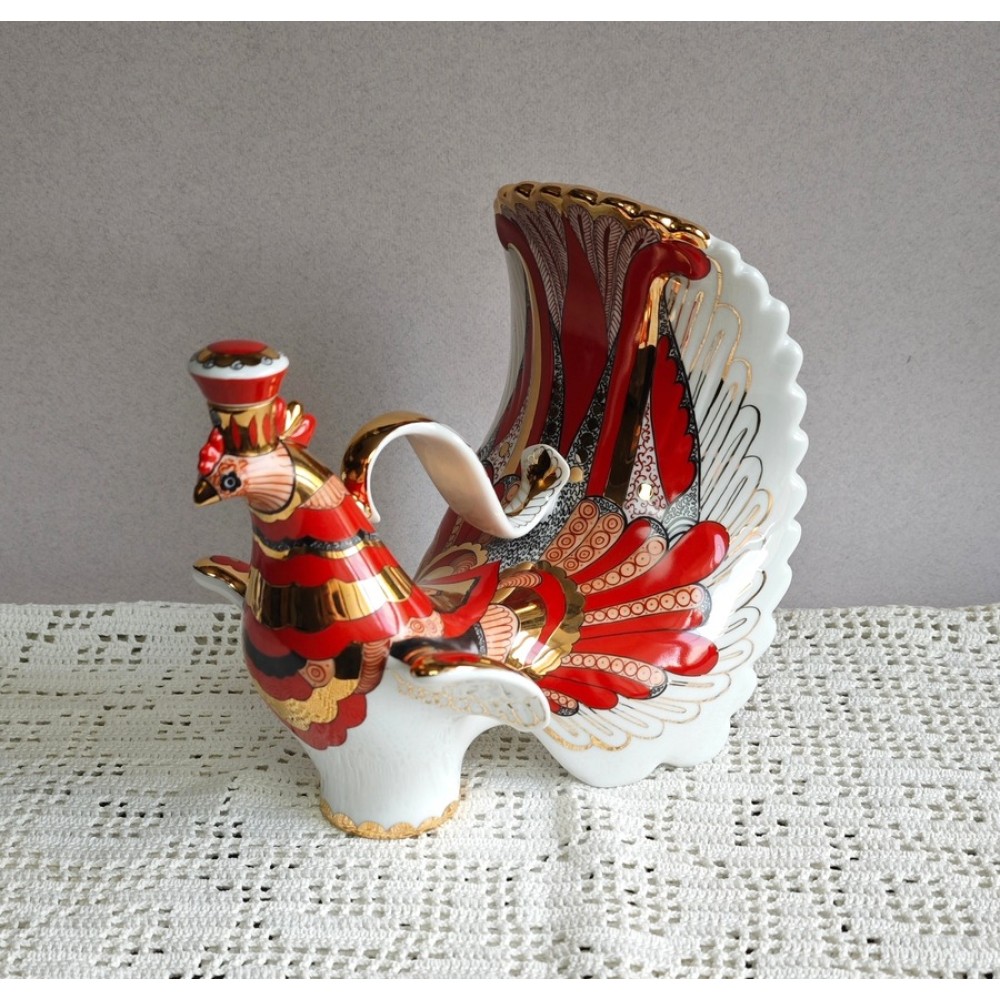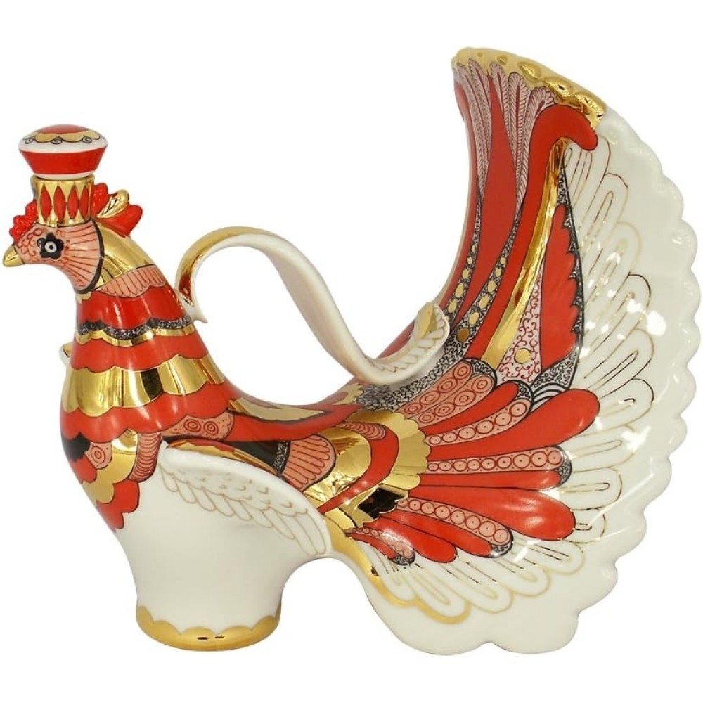 The "Firebird" decanter, shaped like a fantastical bird with bright red and gold plumage, was created in the 1950s by Honored Artist of the RSFSR Eduard Mikhailovich Krimmer. When filled with liquid, the decanter emits melodious sounds.