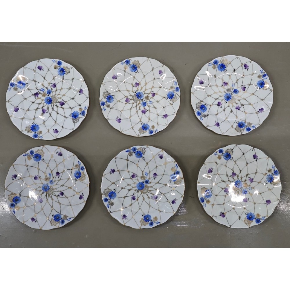 Six dessert plates from the "Golden Mesh" ("Cornflowers") tea set, by A.A. Yatskevich, LFZ.