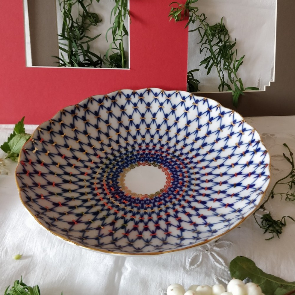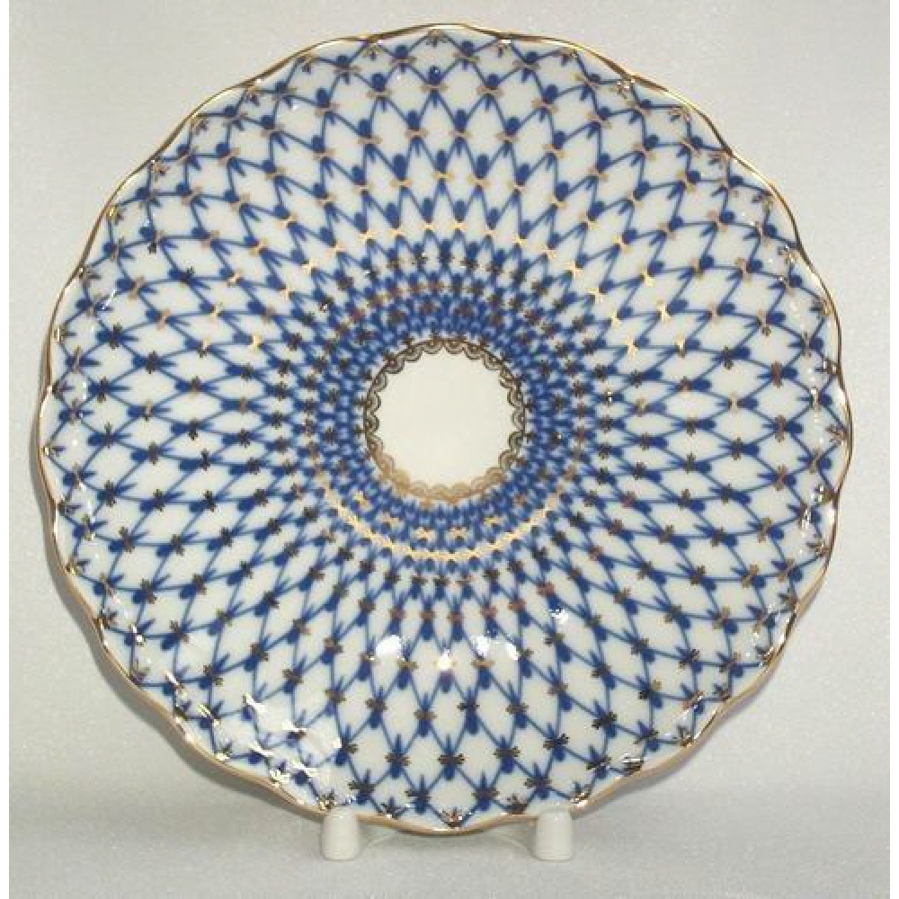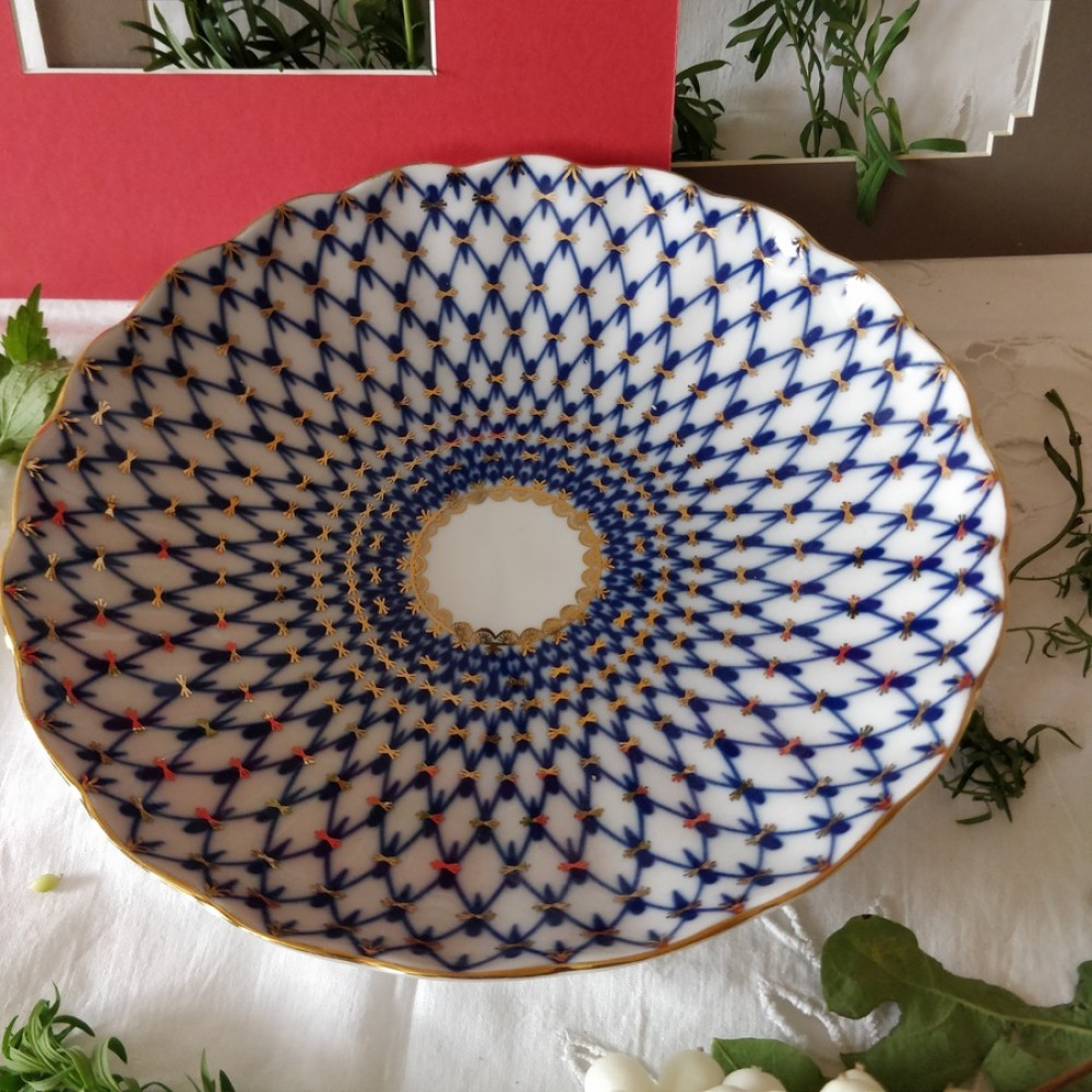 Gold Cobalt Net Cake Dish Russian Lomonosov porcelain