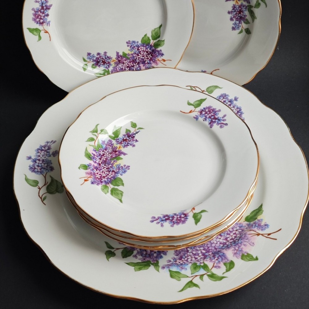 Plate (30 cm diameter) and 6 Lilac Dulevo plates (20 cm diameter).