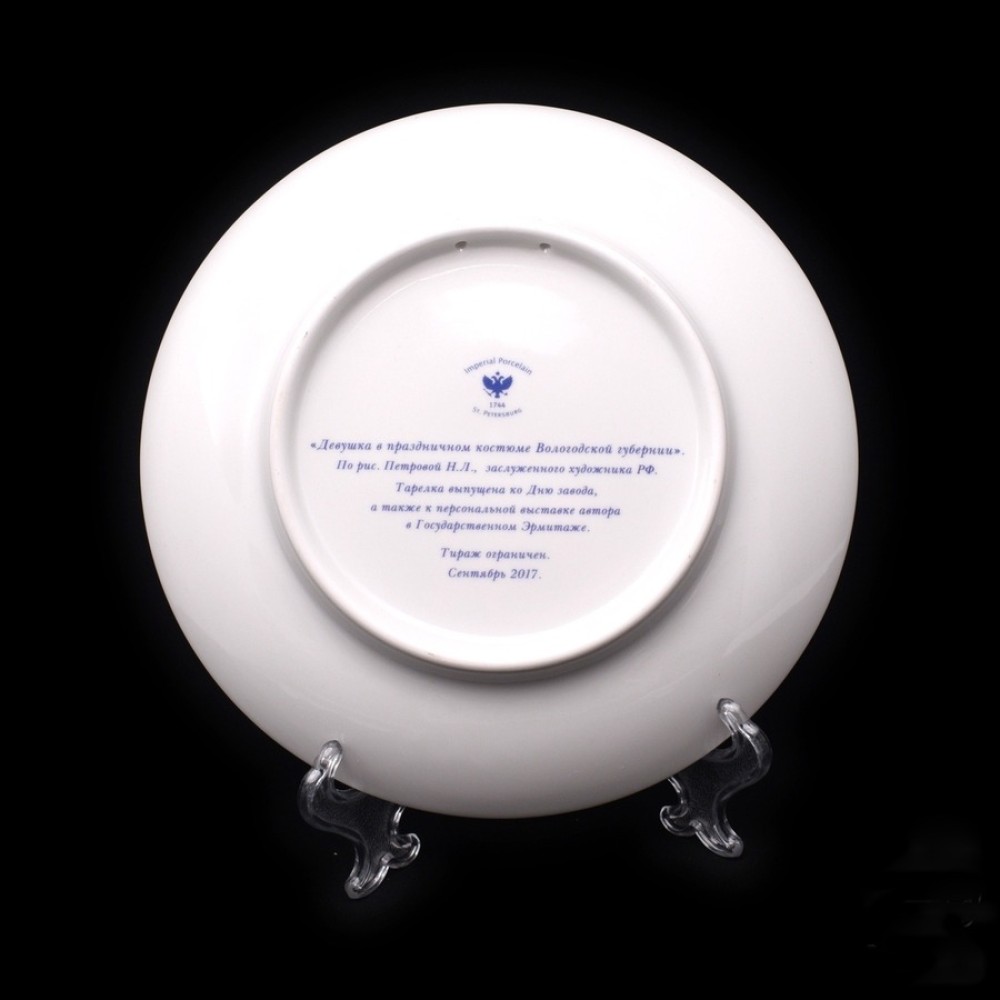 Collector's plate "Girl in a Festive Costume of Vologda Province," Imperial Porcelain Factory.