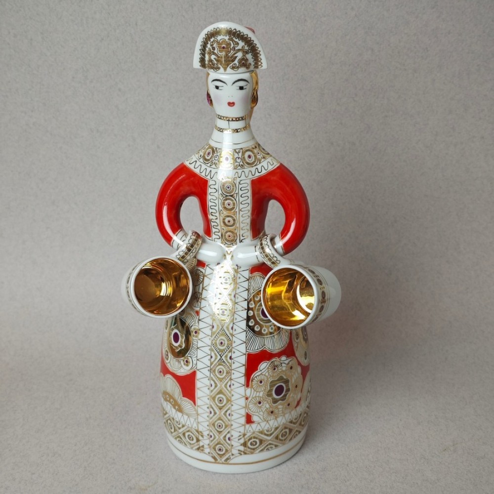dUnique Russian wine set red sarafan Lomonosov porcelain.