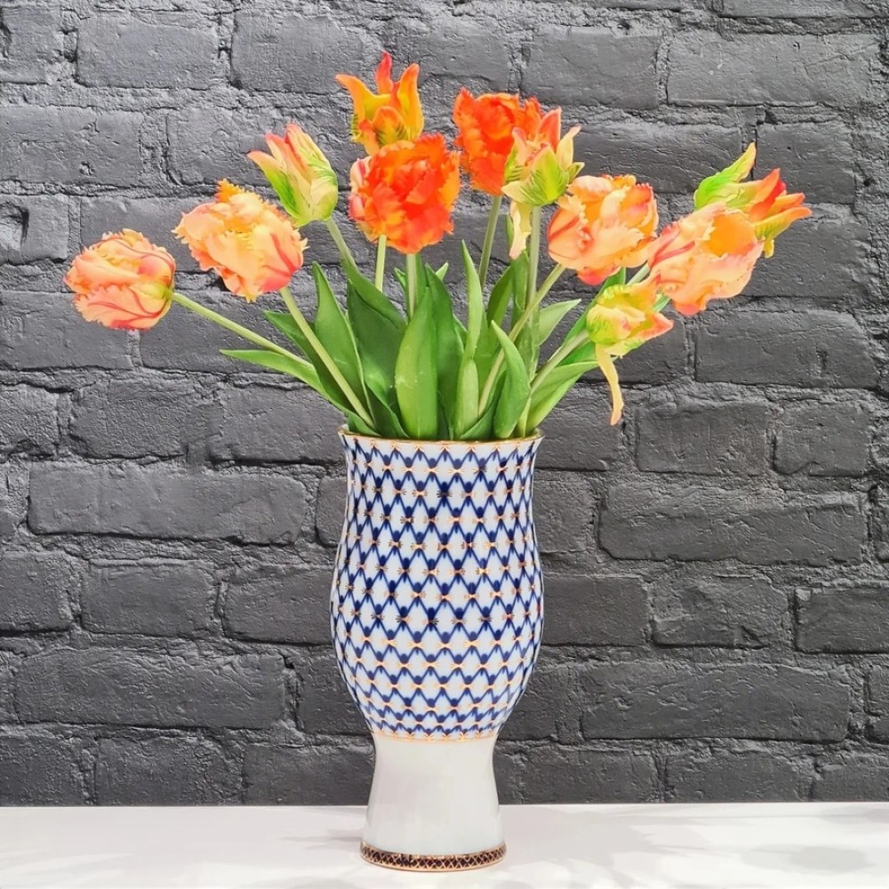 22K Gold Cobalt Net Flower Vase Russian Lomonosov porcelain