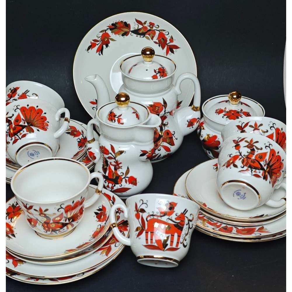 Vintage Teaware "Folk Motifs," after A. Vorobyevsky's designs, LFZ