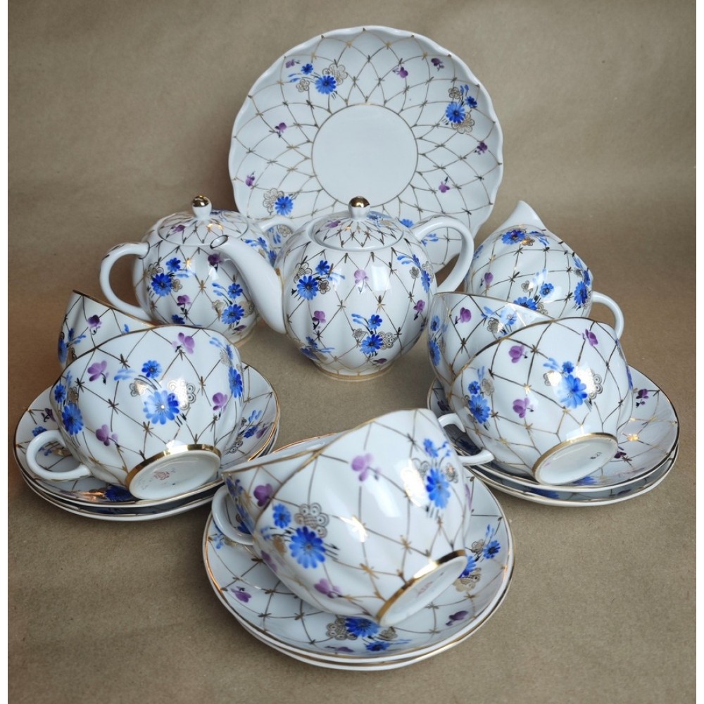 Tea set "Golden Mesh" (blue), LFZ, USSR, Yatskevich 60s.