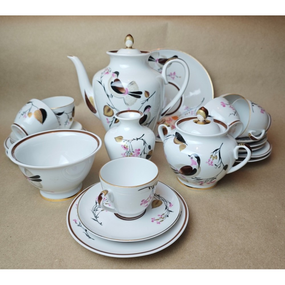 "Spring Voices" coffee set, LFZ, USSR porcelain, 1980.