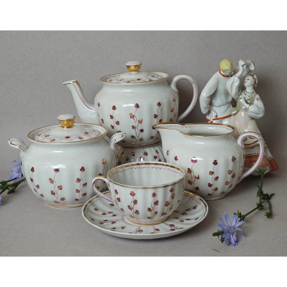 Tea service for 6 (15 pieces), Dmitrov Porcelain Factory (Verbilki DFZ), USSR porcelain, 1954-1965.