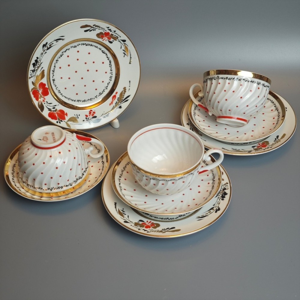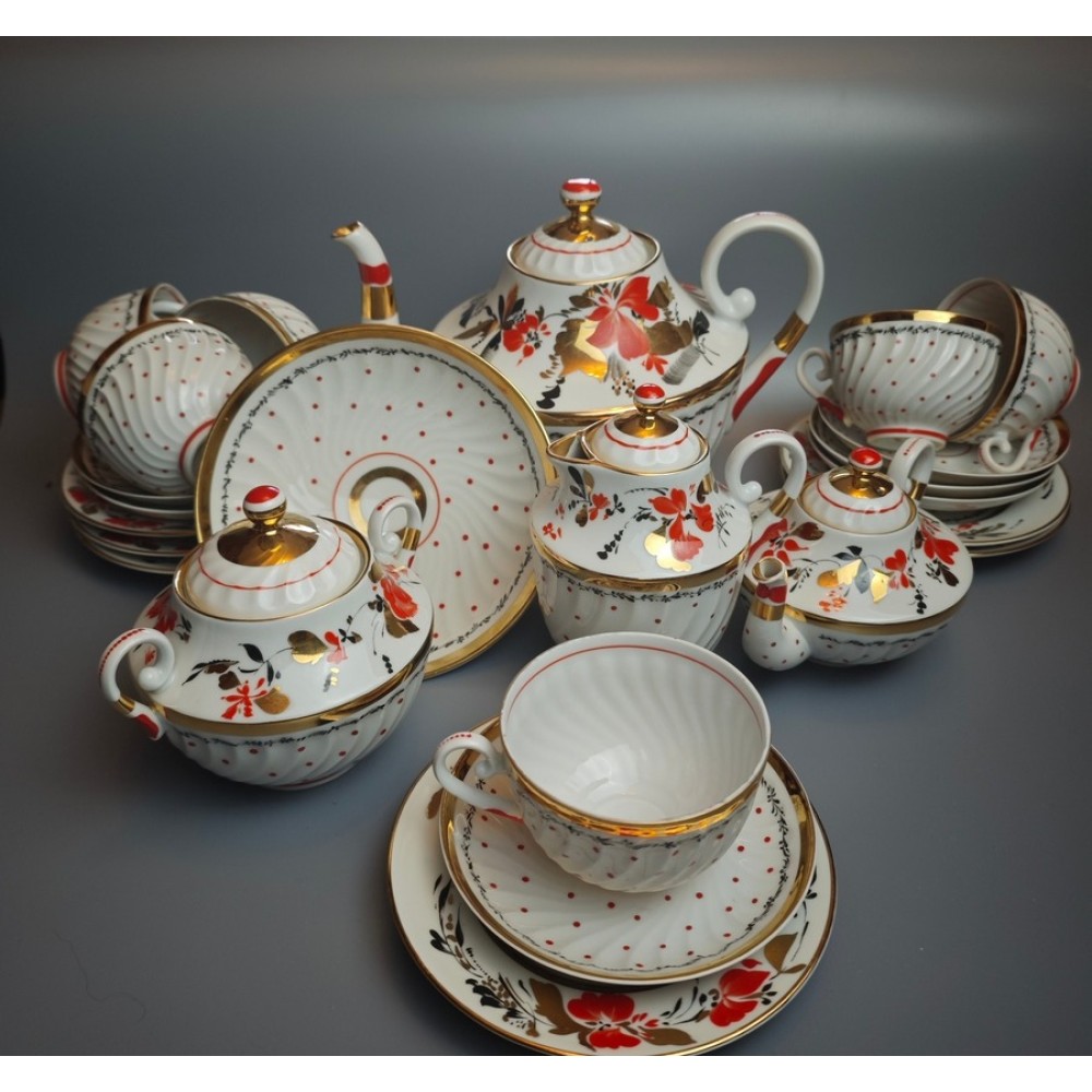 Selenovy Tsvetok "Twisted" tea set, LFZ, USSR porcelain, second half of the 20th century.