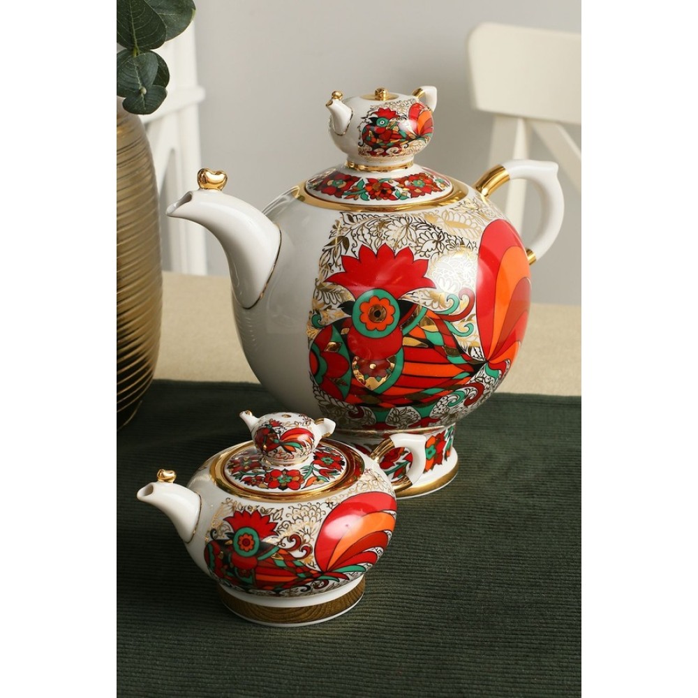 The tea set Golden Cockerel was made at Imperial (Lomonosov) Porcelain Factory in St. Petersburg, Russia. For the first time wonderful pattern of these teapots created at the Lomonosov Porcelain Factory in St. Petersburg by Alexei Vorobyevsky, porcelain painter and Eduard Krimmer, modeler in 1972. ❗ The large tea pot is 24 x 16 x 22 cm (10" x 6 1/2" x 9"). It holds 1800 ml water. The small tea pot is 14 x 10 x 9.5 cm (5 3/4" x 4" x 3 3/4"). It holds 250 ml water. Hand - painted with gold 22K ink. Brand new, never used, in excellent condition. The Imperial Porcelain Factory was founded by Empress Elizabeth in 1744 in Saint Petersburg, Russia. The Imperial Porcelain Factory was the first porcelain manufacturer in Russia to develop and commercially implement the alabaster porcelain technology. This fine delicate porcelain is a more brilliant white than the usual kind, and thin almost to the point of being translucent. From its first porcelain bear, hand-made by the inventor of Russian porcelain, Dmitry Vinogradov, the factory has continued the tradition of creating life through porcelain. This quality, demanded by the Imperial Romanov Family, can still be found two and a half centuries later, when more than 300 different types of figurines are made at the factory for people throughout the world to enjoy. And every one of them is hand­made and hand-painted. It is this special attention to detail of porcelain artists which infuses each figurine with life, soul, individuality. Durning the Soviet time the factory became known as the Lomonosov Porcelain Factory (LFZ) In 2005, Lomonosov Porcelain Factory was renamed to its pre-Soviet name, the Imperial Porcelain Manufactory (IPM) Standards of excellence set by Lomonosov sculptors, such as B.Vorobyev, I.Riznich, P.Veselov received high international acclaim at World Exhibitions in Brussels, New York, London etc. Pictures are part of the description and reflect the current state of the article. The real color of the item may be slightly different from the pictures shown on website caused by many factors such as brightness of your monitor and light brightness. Please keep in mind that shipping takes 3-5 weeks to the USA and 10-20 days to Europe. Customs can cause delays with your shipment which the seller has no control over. Please consider such delays when making your purchase. unique teapot gold teapot russian teapot Christmas gift Christmas gift for her Christmas gift for him Christmas gift for mum