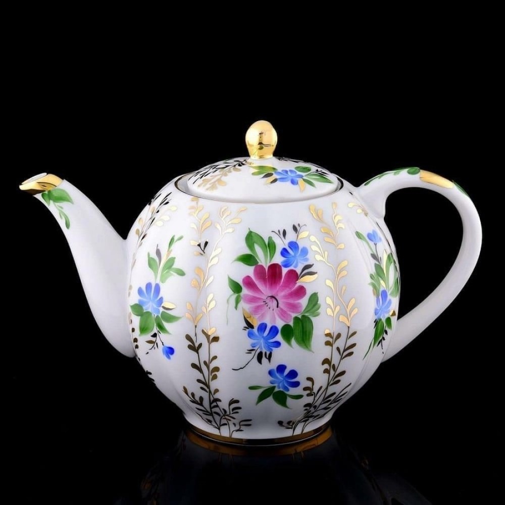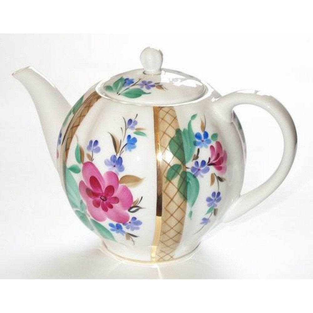 Enamel Painting Teapot Flowers Lomonosov porcelain