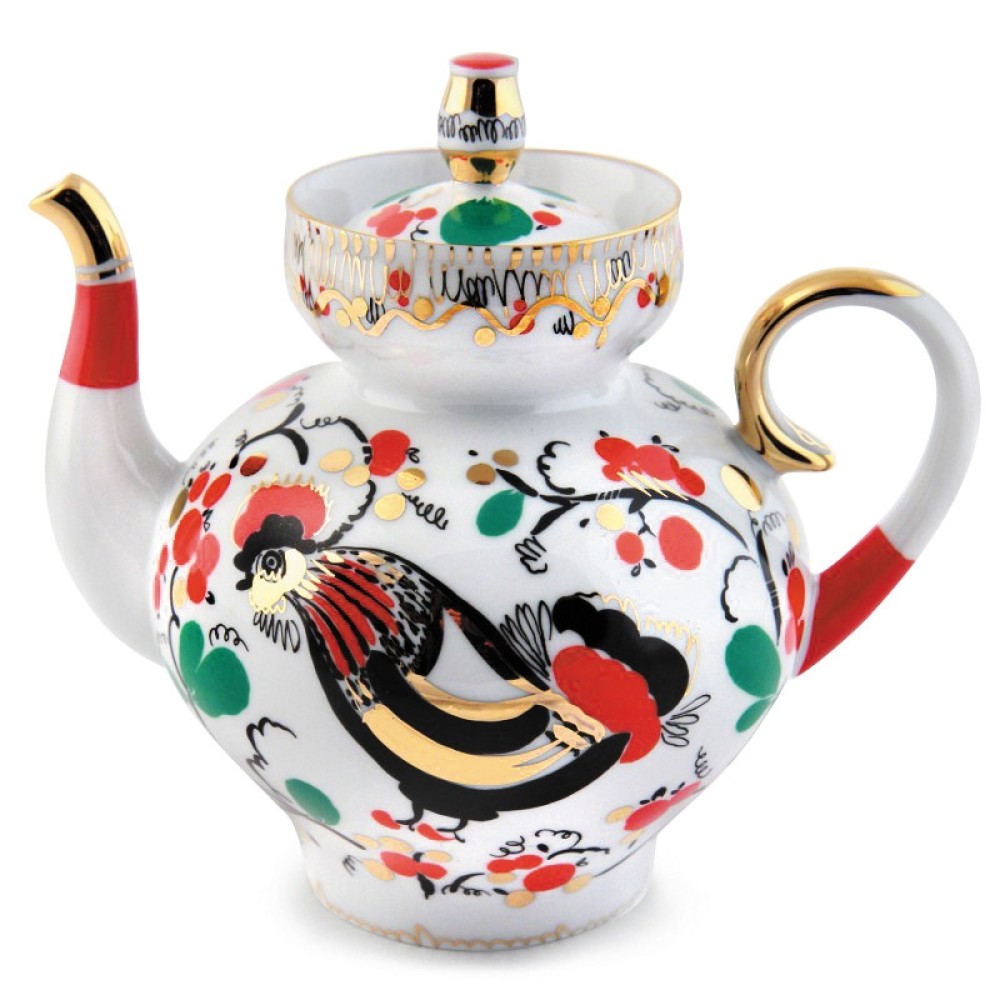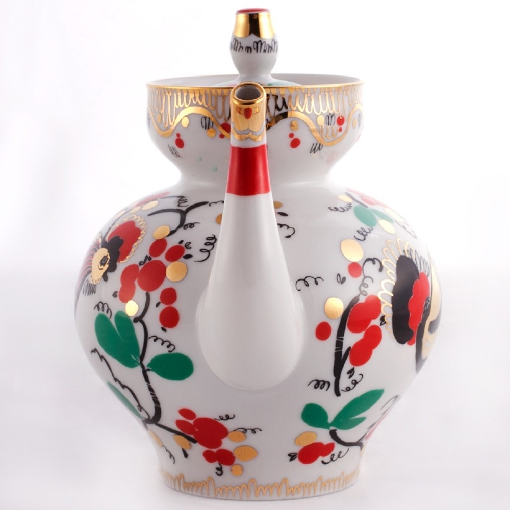Teapot Cockerels Imperial Lomonosov Porcelain