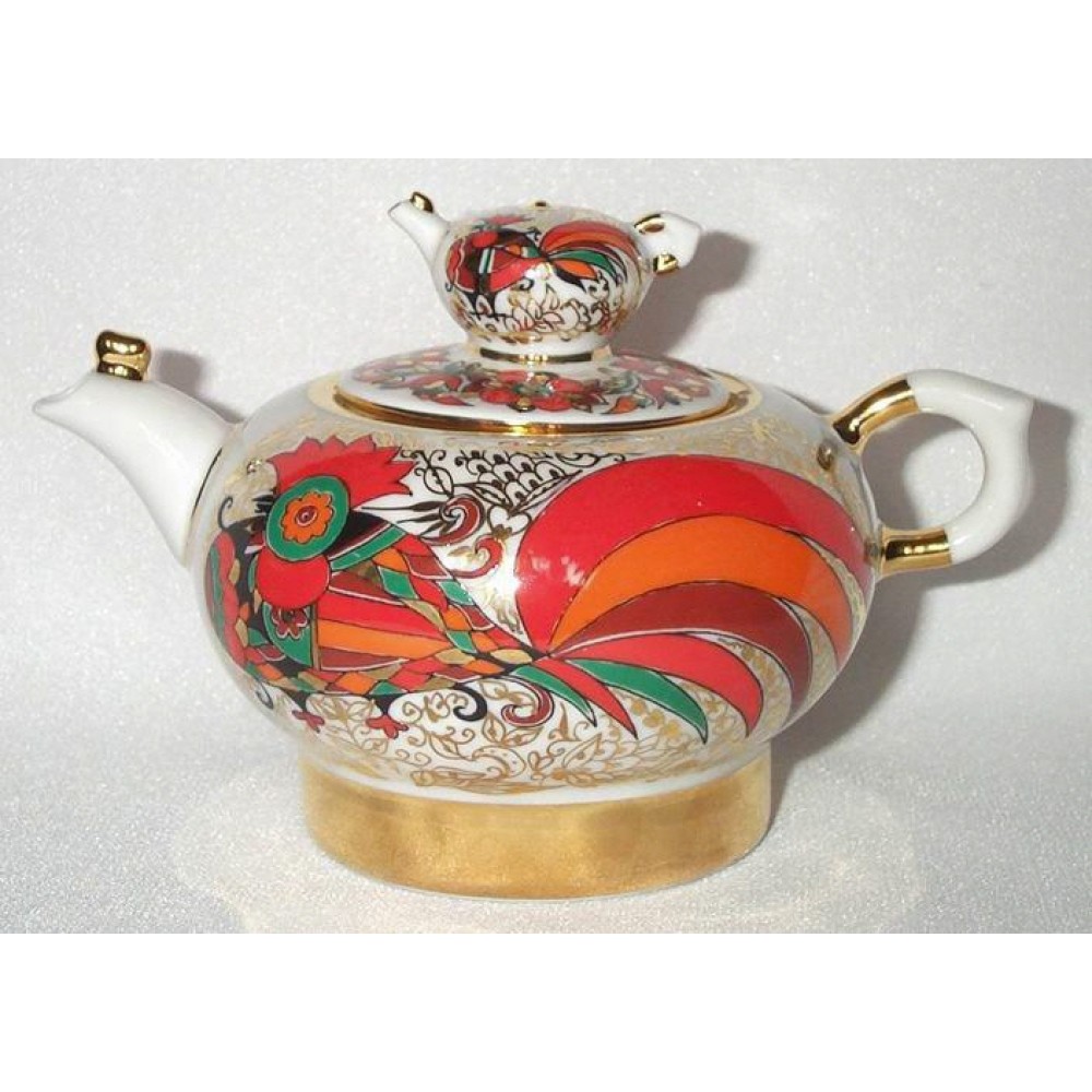Unique Russian Teapot Golden Cockerels Lomonosov porcelain
