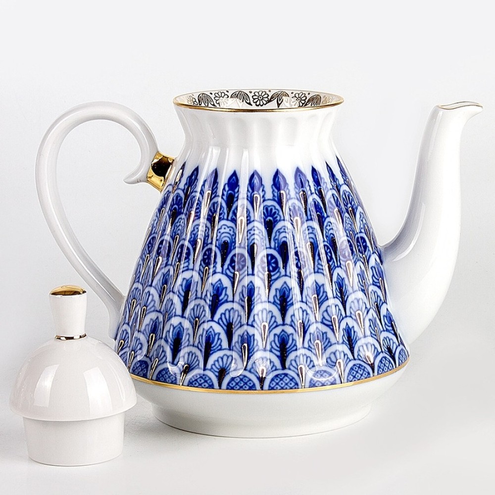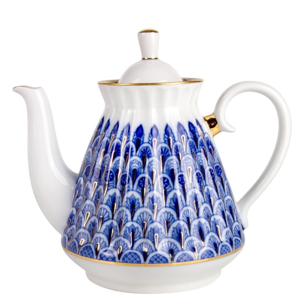 This pattern is named Forget-Me-Not . The Teapot is approximately 7 inch. tall (with lid). Volume is 750 ml. It is hand - painted with 22 Karat Gold Ink. It has a stamp Lomonosov Porcelain Factory LFZ on the bottom. Brand new, excellent condition, export quality.