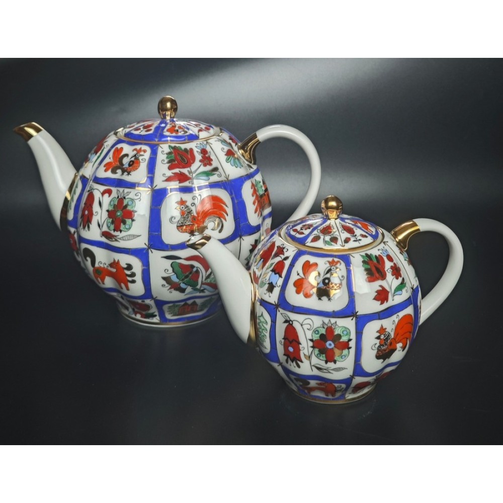 Teapot Set – Filler & Brewer – Tulip form, Russian folk art design, IFZ, New.