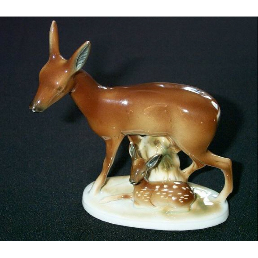 Beautiful Deer - mother and baby- old German porcelain figurine
