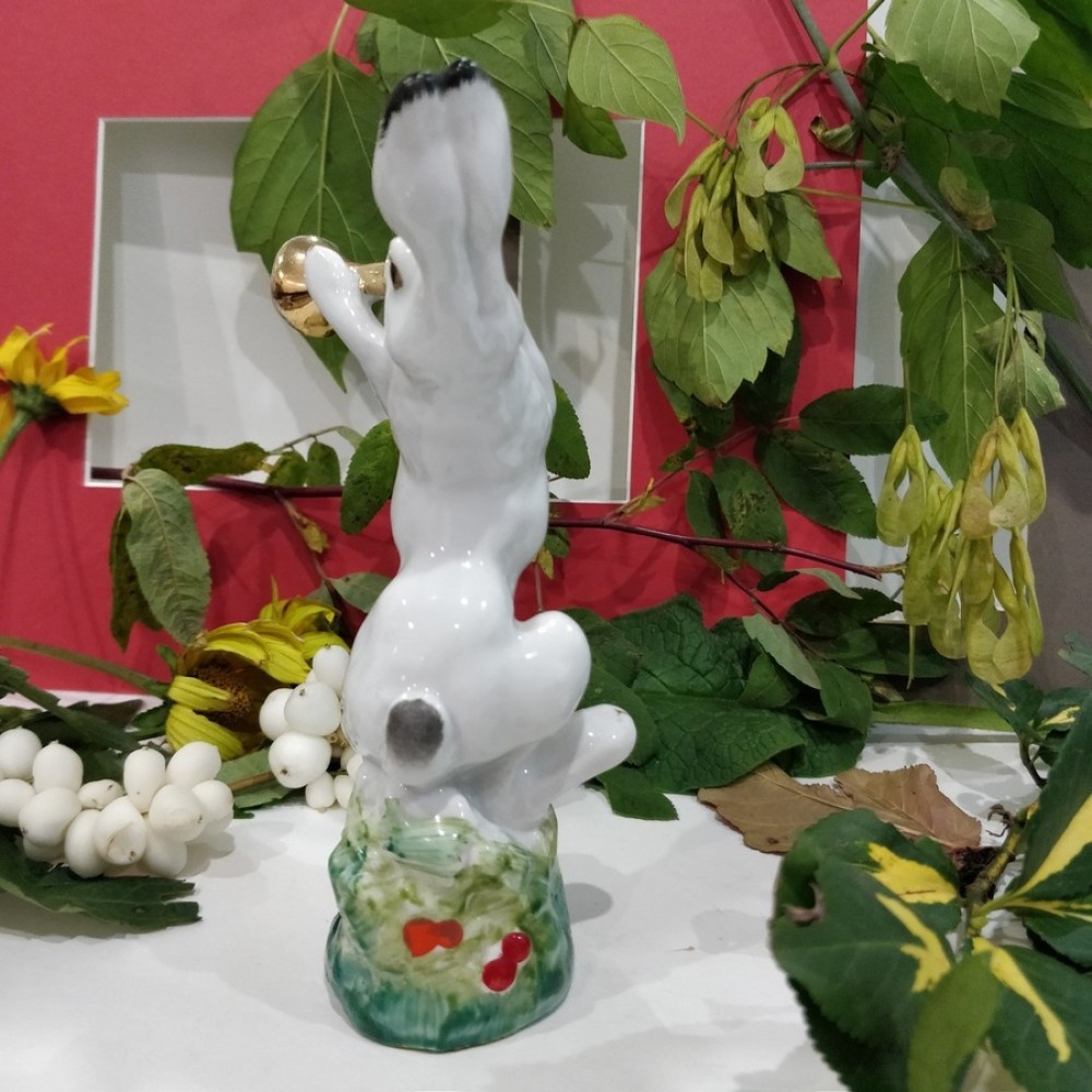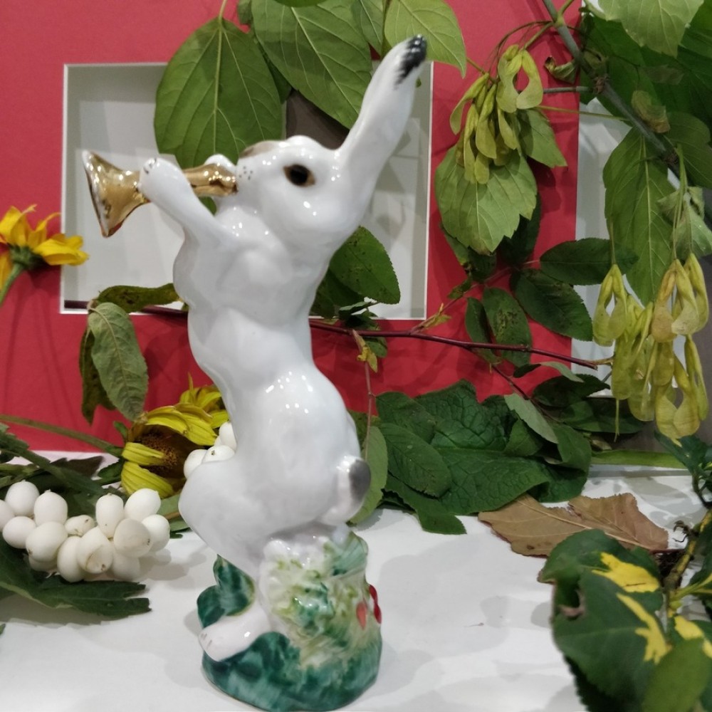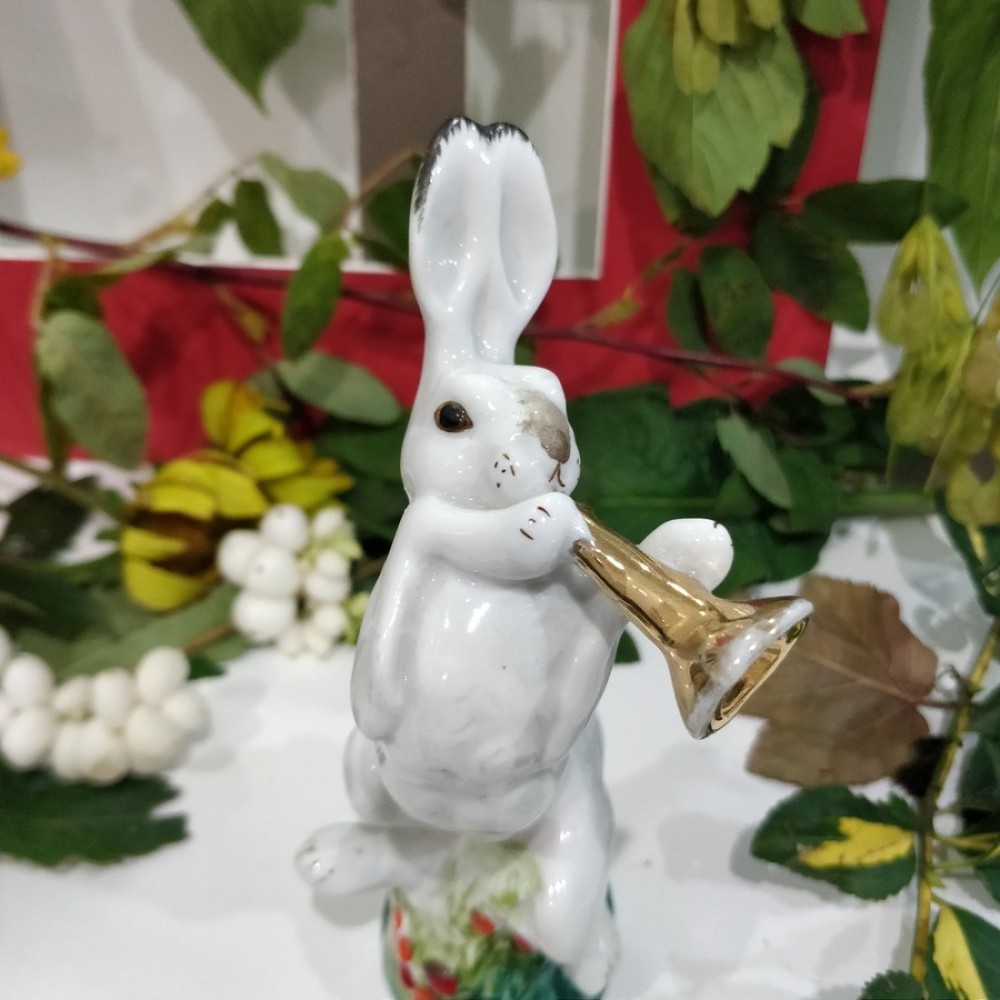 The trumpeter hare USSR Lomonosov porcelain figurine 1950s
