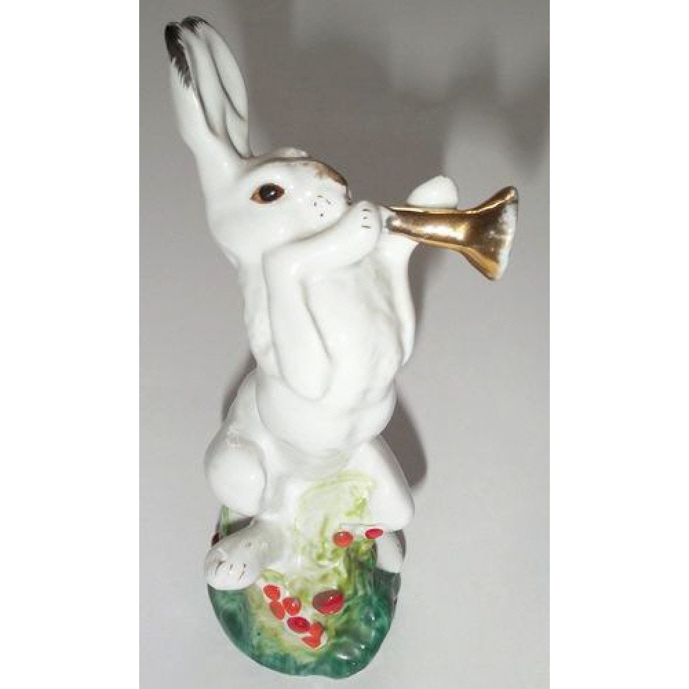 Hare with Trumpet - Rabbit Musician Porcelain Figurine Russia LFZ Lomonosov