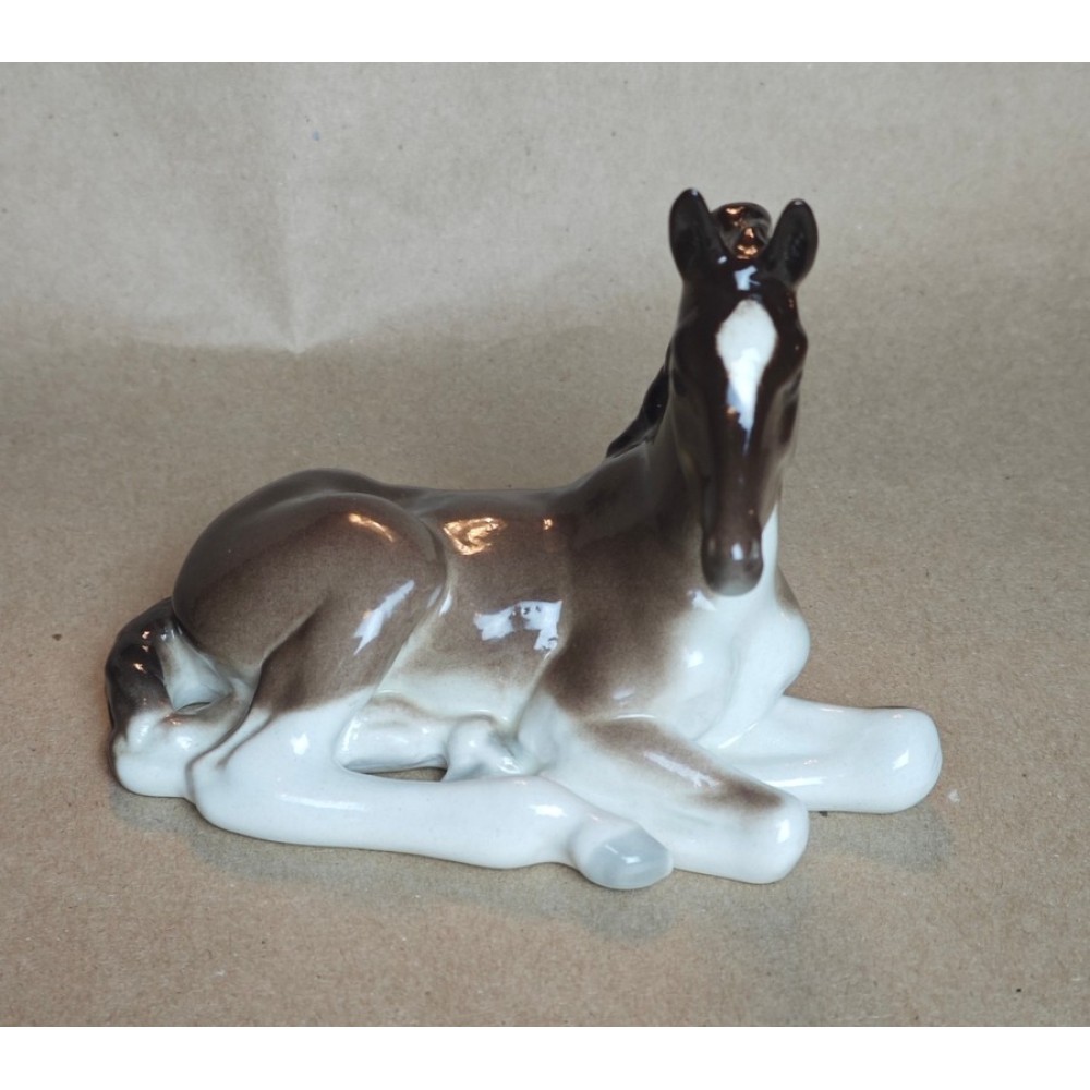 Porcelain figurine of a reclining foal, LFZ, USSR porcelain.