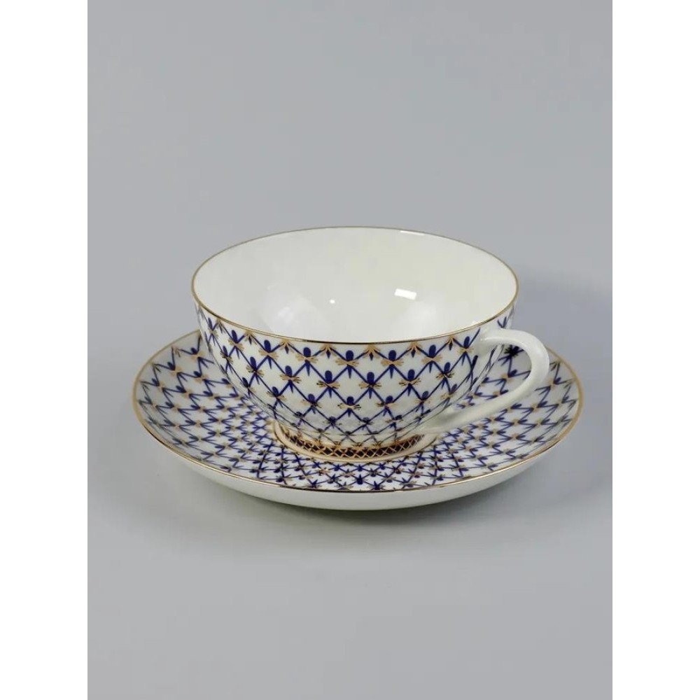 Cup and saucer, "Kupolnaya" pattern, cobalt mesh, IFZ factory.