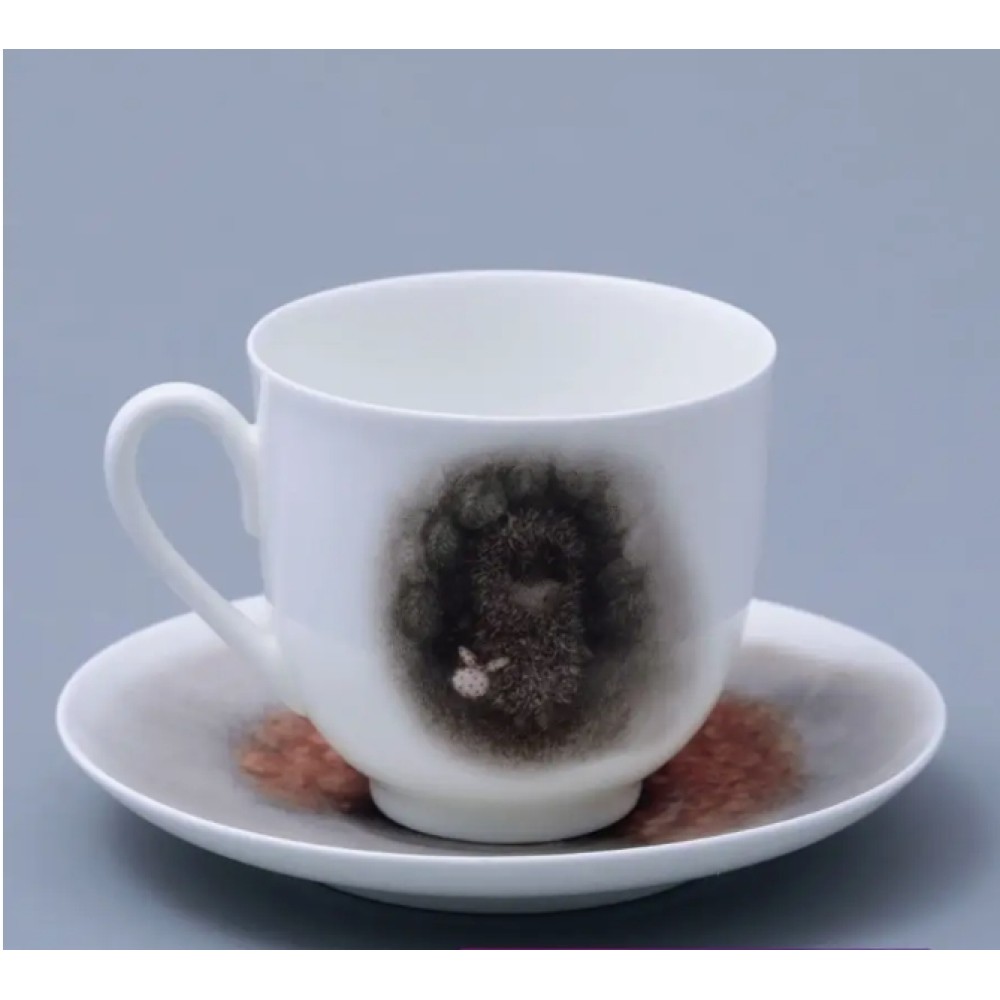 RARE Coffee cup and saucer with the "Hedgehog in the Fog. Dog" design on the “Lily of the Valley” shape, manufactured by the Imperial Porcelain Factory from bone china. Overglaze decals were used for decoration. The drawing’s author is Yuri Norstein. The “Lily of the Valley” shape was restored based on late 19th-century museum specimens and was one of the first bone china cups, production of which began in the late 1960s. Production of the item commenced in 2013. Currently not being produced. Cup volume - 160 ml, height - 6.5 cm, saucer diameter - 12.1 cm.