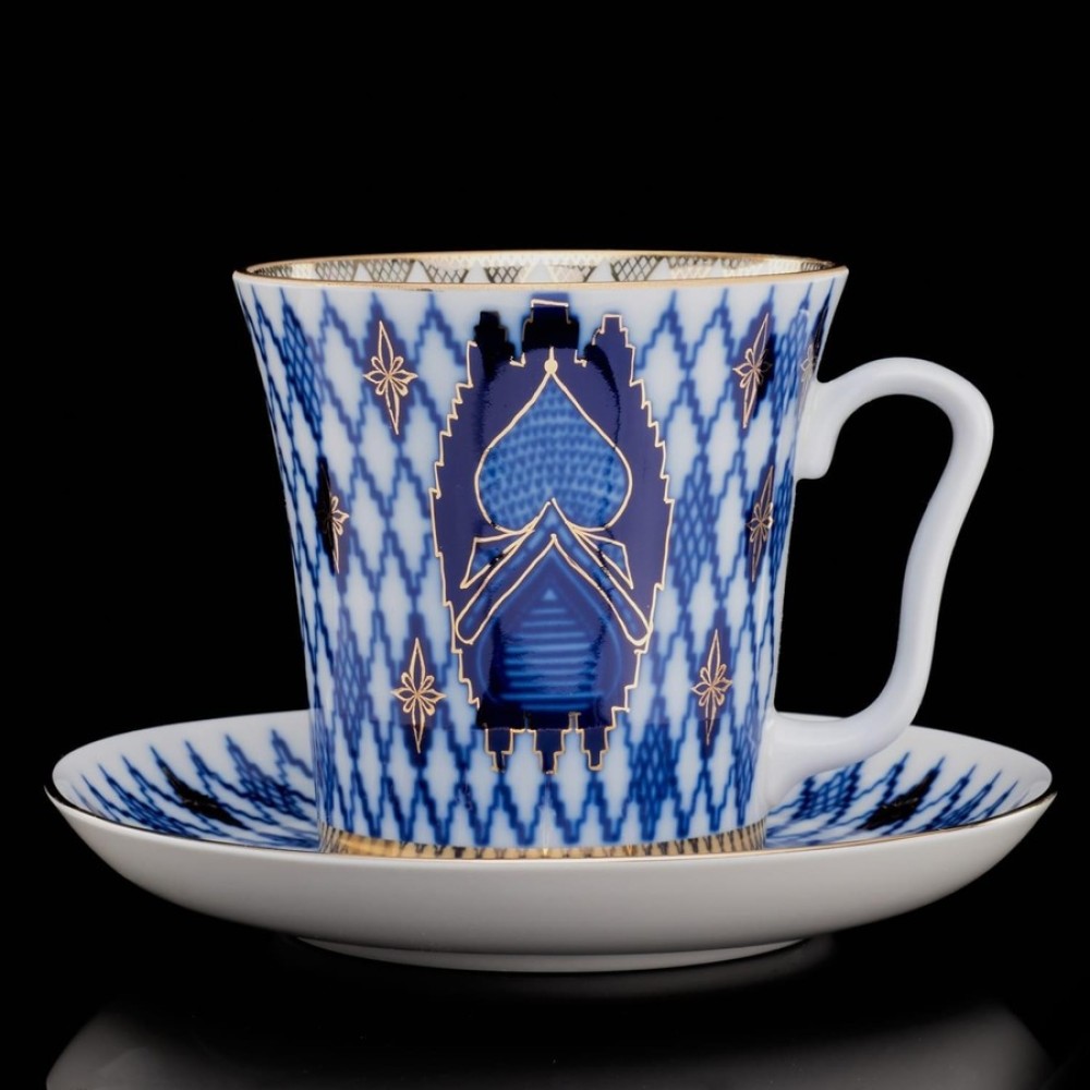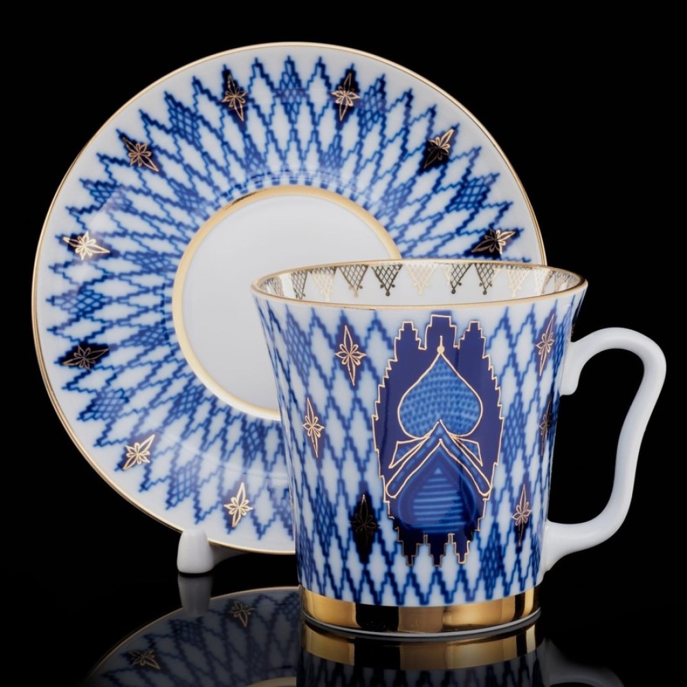 This colorful porcelain Cobalt Gold nug with saucer with a magnificent original design will complement any meal - whether it is an ordinary tea party with friends or a holiday feast. The nud and saucer was made at the legendary Imperial Porcelain Factory, which was opened in the second half of the 18th century, in accordance with the old production methods of the company. The set is decorated manually, using the overglaze technique.