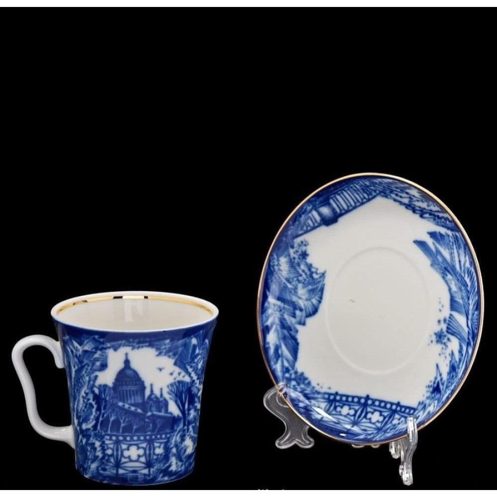It was made in the Lomonosov Porcelain Factory in St. Petersburg, Russia former Soviet Union. The mug is approximately 4 inch. tall. The saucer is approximately 5 inch. in diameter. It has Lomonosov Porcelain Factory (LFZ) logo on the bottoms. Hand - painted with 22 Karat Gold Ink. Brand new, excellent condition, the export quality.