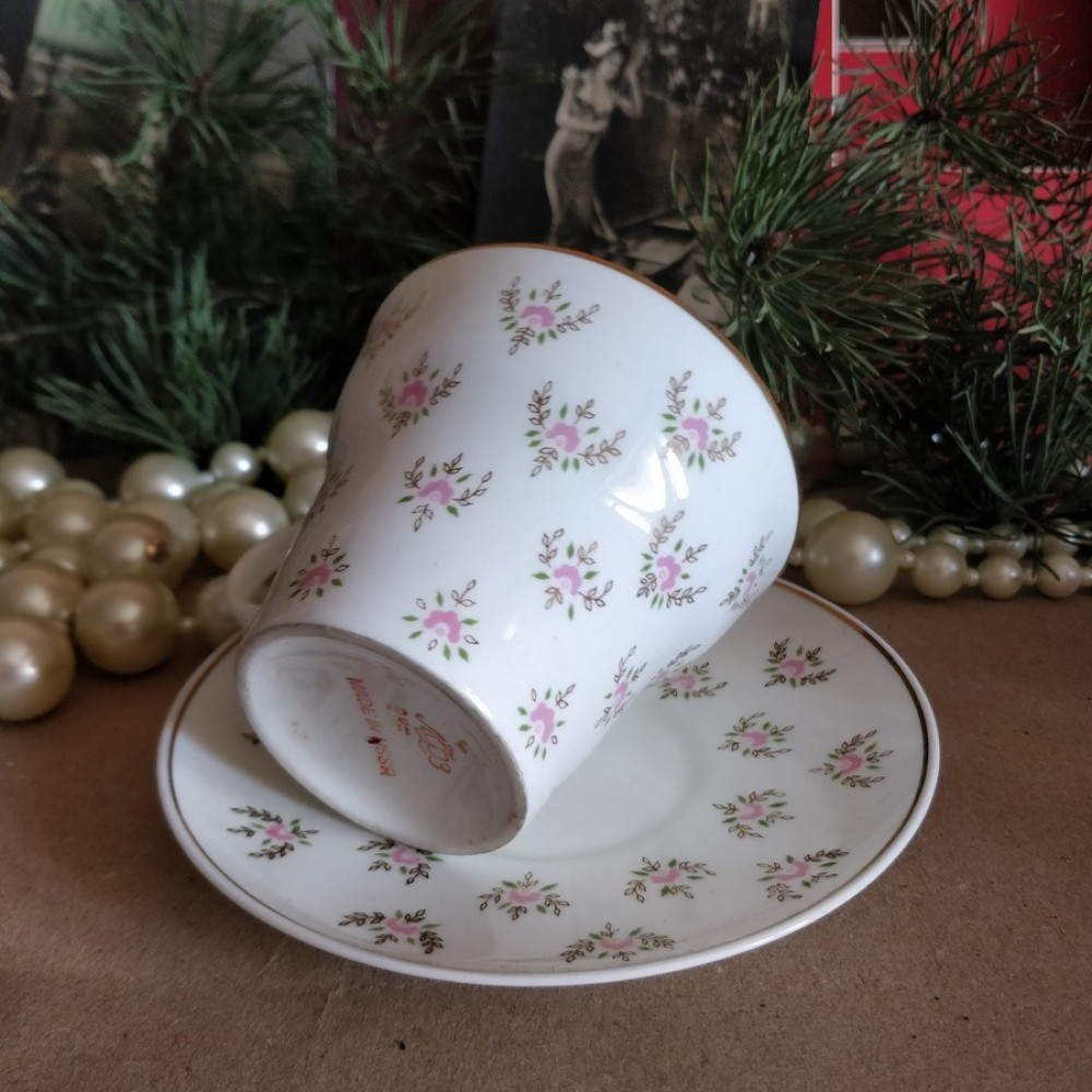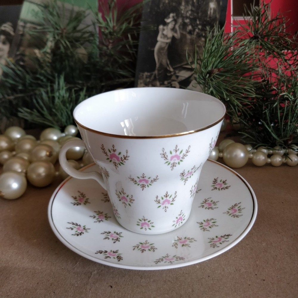 Bone china Cup and Saucer "Forget-Me-Not" Lomonosov porcelain Made in USSRBone china cup and saucer was made in USSR in the Lomonosov Porcelain Factor