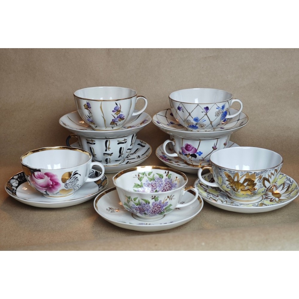 UNIQUE OFFER - every buyer of the lot will receive a pair of Lilacs, Dulevo, as a free gift!! Offer is limited! All pairs are in excellent condition – no chips, cracks, they all ring true. Some pairs have minor signs of use. Contact via private message for additional photos. The Lilacs are without chips, cracks, ring true, and feature gilding on all pieces from 5+ to 3+. First buyers will receive the best selection, there is a wide variety to choose from. Located in St. Petersburg. Shipping available from both St. Petersburg and Riga.