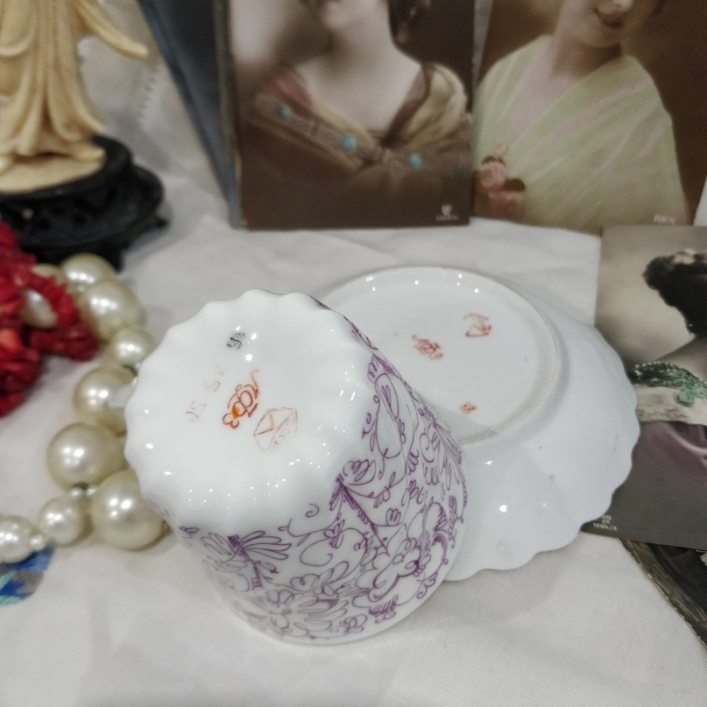 Bone china cup and saucer was made in USSR in the Lomonosov Porcelain Factory. It has the USSR Lomonosov Porcelain Factory logo on the bottom. Used, in excellent condition.