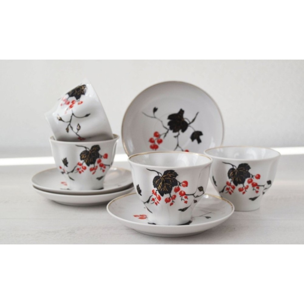 Cup and saucer, "Friendship" pattern, Red Currant Branch, LFZ, USSR porcelain.