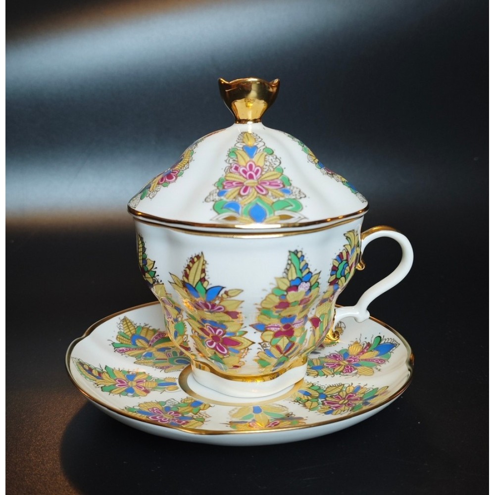 Cup and saucer with lid, Fantastic Flowers, IFZ, New.